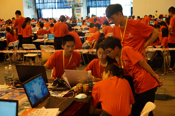 最后,张平宣布2018年湖南省“新道杯”第三届大学生企业模拟经营竞赛正式开幕。随后,技术人员检查好电脑电源等设备后,志愿者发放U盘,参赛队伍开始比赛。