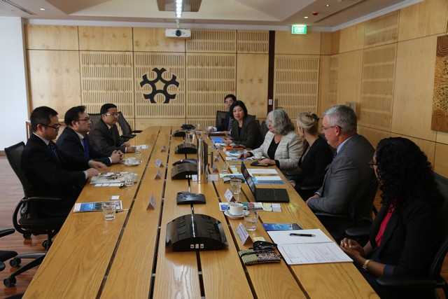 在堪培拉大学,曹晓鲜一行得到了堪培拉大学副校长李荣玉等的热情接待,李荣玉副校长对曹晓鲜副书记一行的到来表示热烈欢迎,并介绍了堪培拉大学的基本情况。曹晓鲜对堪培拉大学的热情接待和前期合作工作表示感谢;从办学历史、办学规模、办学层次、办学成绩和社会影响等方面介绍了我校的整体情况;说明了双方办学的共同点及合作的重大意义。随后,双方就商学院工商管理、会计学两个专业学分互认协议相关内容进行了深入探讨,曹晓鲜与李荣玉分别代表两校在协议书上签字。会谈结束后,曹晓鲜一行在堪培拉大学相关部门负责人的陪同下参观了学生活动中心、学生食堂、商学院、艺术设计学院等。在堪培拉国立大学和悉尼大学,曹晓鲜一行分别参观了学校图书馆、教室、案例讨论室、实验室机房等。