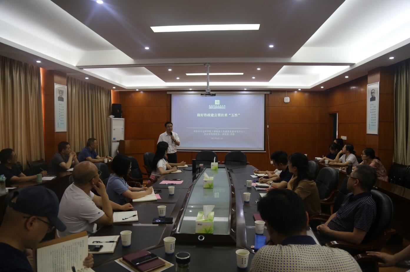 应学院邀请,6月14日下午,湖南省社科院经济研究所所长李晖研究员到学院开展了一场主题为“做好咨政建言要注重‘五性’”的学术讲座,学术讲座由院长丁建军主持,学院全体教职工、部分研究生参加了讲座。