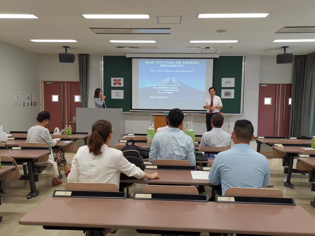 在日本经济大学期间,学院代表团首先参加了第55届东亚社会・产业・企业国际学术会议。本次国际学术会议由日本经济大学大学院政策科学研究所、亚东经济国际学会(第55回)、全球化区域研究会(第6回)、日本观光学会九州・冲绳支部、东北亚福祉经济共同体论坛、韩国・长善综合福祉共同体论坛、中国・复旦大学产业经济学系、中国・kaiyun开云官方网站、台湾・国立高雄科技大学管理学院联合举办,大会主题为“东亚社会・产业・企业发展政策”。会议共分为三个阶段,第一阶段研究报告,主要由日本经济大学院教授高桥文行、kaiyun开云官方网站孙爱淑博士和刘涛老师以及日本经济大学教授市川千寻等作为主讲人进行汇报。第二阶段基调演讲,主要开展了3个主题报告,报告主题分别为“东亚平和・社会发展”、“东亚产业・观光发展政策”、“东亚社会・福祉发展政策”,分别由名古屋大学名誉教授平川均、复旦大学教授芮明杰和国立高雄科技大学教授刘修祥等教授作为主讲人来开展汇报。第三阶段专题报告,我院龙海军副教授、彭耿教授、王泳兴博士、殷强博士以及我院研究生张晓丹和周宇分别做了主题发言,并在会议结束后与其他高校代表进行了深入的交流与讨论。