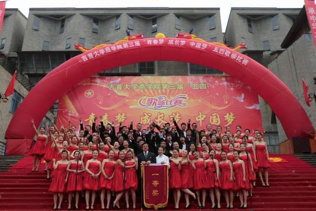 比赛中,2012级经济班学生身着苗服,一个个充满自信、充满力量。一首《家乡有条猛洞河》唱的高亢、有力,表现出了湘西儿女对家乡的热爱与思念;2011级会计一班班主任张生强老师上场朗诵演唱,自然、亲切、婉转的演唱让人陶醉;2012级会计一班精心设计的《四渡赤水》情景表演点燃了全场的欢呼,高水平的演唱再现了红军当年斗争的坚韧不拔,以及深厚的军民鱼水情;2011级市场营销班学生方队整齐,把一首《万里长城永不倒》唱得铿锵有力,雄狮舞动,鼓声震动,引起台下掌声阵阵;老年艺术团的一首《欢迎到湘西来》将湘西民俗美景展现得淋漓精致,他们自创的一曲《开创新时代》,充满激情活力,表现出对中国梦实现的充分信心!最后,学院全体齐唱《歌唱祖国》、《kaiyun开云官方网站校歌》,再一次把现场推向了高潮。