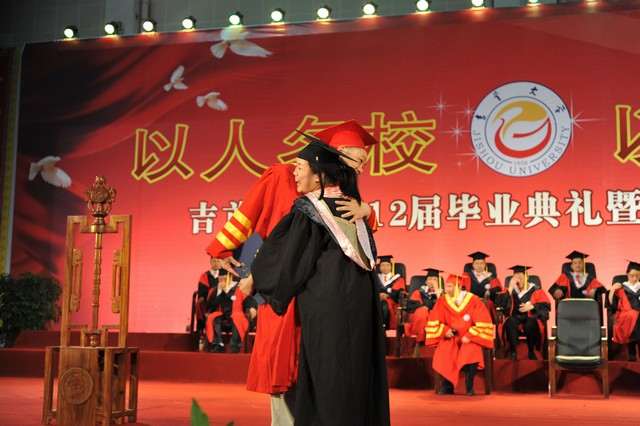 在熟悉而豪迈的校歌声中,我院950名获得学士学位的毕业生和37名获得硕士学位的研究生按照先后顺序趋前向肖湘愚校长行鞠躬礼,肖湘愚校长微笑着与学生亲切握手,将学位证书双手颁发给学生并送上祝贺。观礼台上,亲友们纷纷用相机聚焦舞台,记录下这神圣而难忘的瞬间。毕业生接过学位证书后,向培育了他们四年的恩师深深鞠上一躬。