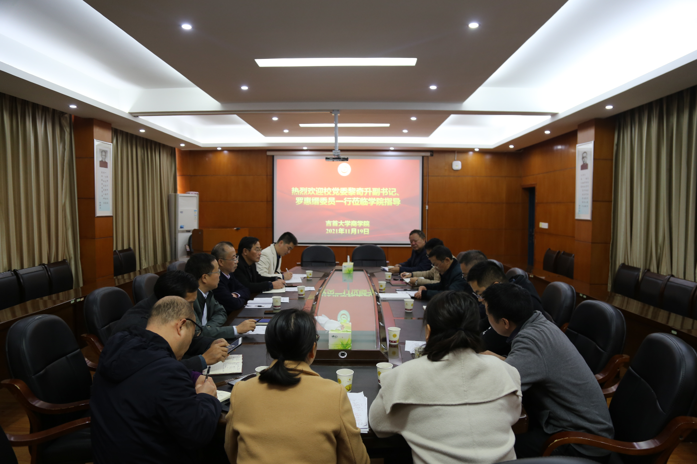 11月19日上午,校党委副书记黎奇升,校党委委员、宣传部部长罗惠缙率校党委组织部常务副部长李洪雄,校党委组织部干部科科长吴岳衡等一行来我院就基层党建工作开展调研和座谈。院党政班子成员和学院党委各支部书记参加了调研座谈。