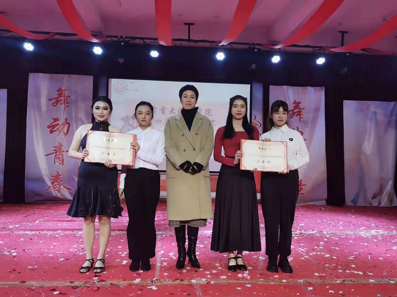 12月24日晚上,学院第四届交谊舞大赛决赛在砂子坳校区老年活动中心举办。学院十二个班级共十二支代表队参加了比赛,校关工委执行副主任石维海,校学工部副部长、武装部副部长陈敏灵,校团委副书记张宝娣,体育科学学院刘生贵,音乐舞蹈学院龙晓娅应邀担任评委。