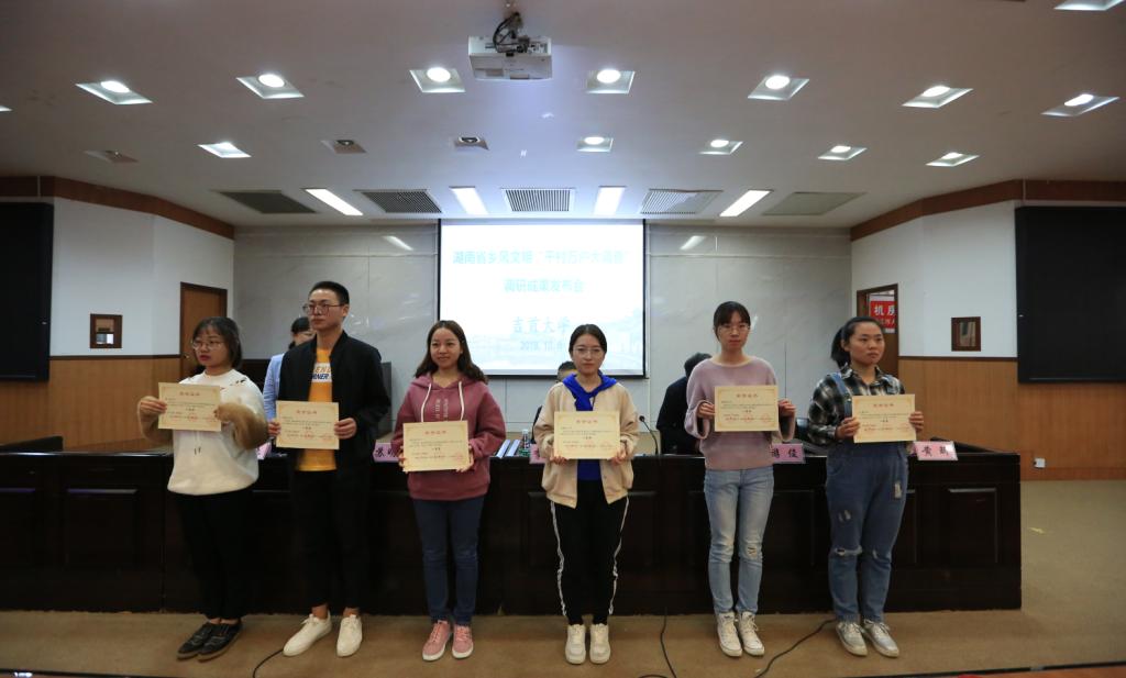 10月8日,由湖南省文明办与kaiyun开云官方网站联合组织的乡风文明“千村万户大调查”调研成果发布会在kaiyun开云官方网站砂子坳校区模拟法庭召开。会上,州文明办主任苏明宣读了优秀调研团队表彰文件,校党委委员、宣传部部长、校团委书记王艳宣读了优秀调研报告表彰文件。
