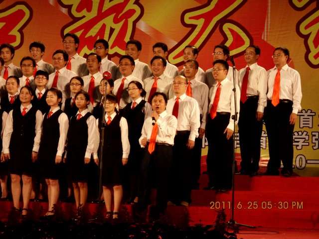 在比赛中,我院教师着装整齐,精神饱满,歌声洪亮。一首《团结就是力量》唱出了我院全体教职工团结奋进的气势,由李政忙副院长激情领唱的《我们走在大路上》更是唱出了我们对共产主义事业的热爱。