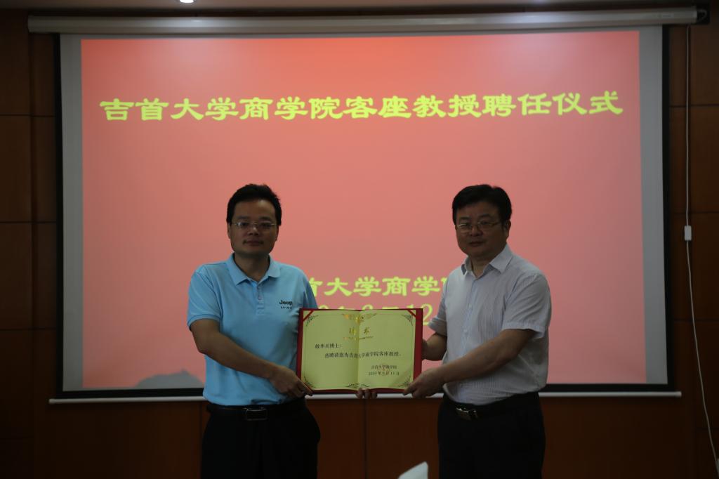 6月12日上午,学院在院会议室举行客座教授聘任仪式,聘任湘西经济开发区党工委委员、管委会副主任敬华兵博士为学院客座教授。湘西经济开发区党工委委员、管委会副主任皮丕军,湘西经济开发区文化教育和卫生局副局长向大海,kaiyun开云官方网站党委委员、副校长冷志明,院党委书记黎克双,院长丁建军参加了聘任仪式,仪式由副院长龙海军主持。
