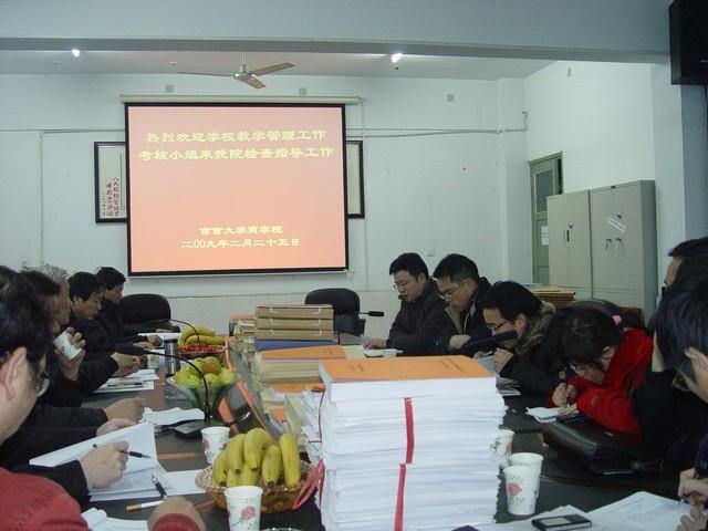为增强本科教学中心意识,加强本科教学管理,提高教学与管理工作水平,学校决定对各学院(部)2008年度本科教学管理工作进行考核。2009年2月25日上午,以学校教学督导团专家汤人翰为组长、相关教学院系副院长为成员的学校教学管理工作考核小组来我院考核本科教学管理工作。在院会议室,院长冷志明教授首先向考核小组汇报了学院教学管理工作;随后专家从组织领导、教学运行管理、教研教改、实践教学、质量管理等方面进行了检查。