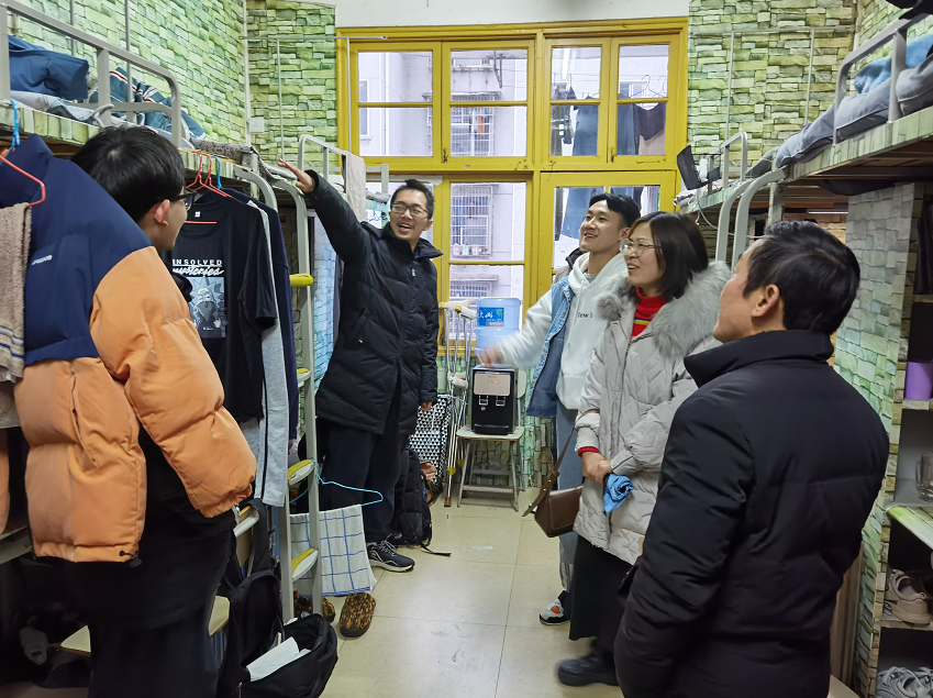 同学们热情迎接,积极地与老师交谈,寝室中洋溢着热闹的氛围。通过此次看望慰问行动,拉近了师生间的情谊,促进了师生间的交流,让学子们感受到了温暖与期盼,更展现了学院上下同心,温暖洋溢的精神风貌。
