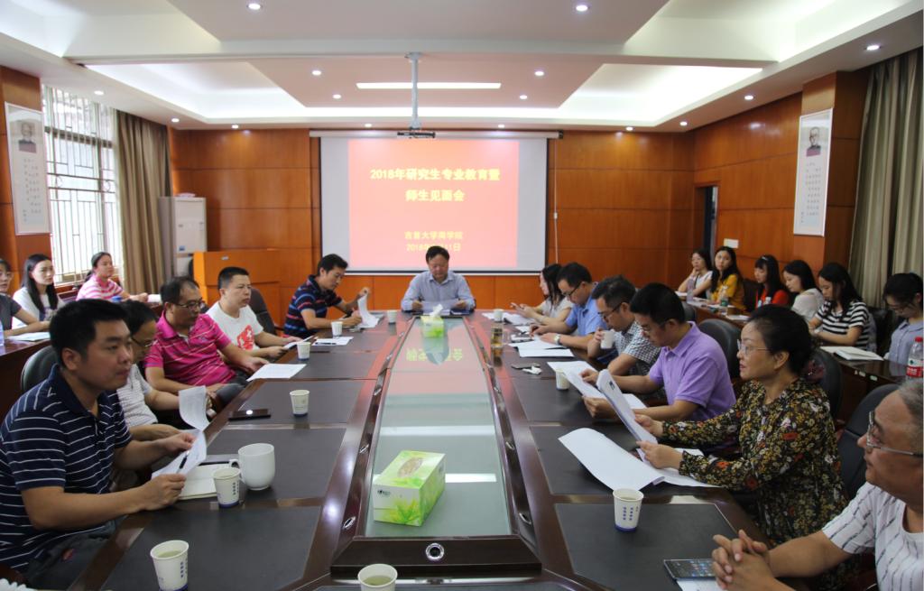 2018年9月11日上午,我院在院会议室召开了2018年研究生专业教育暨师生见面会,院党委书记黎克双、主持工作副院长彭耿、副院长丁建军、龙海军以及我院全体硕士研究生导师出席会议,2018级硕士研究生新生参加了见面会。