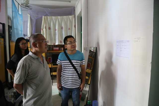 在寝室里,黎书记、钟书记以及各位老师向同学们表示了亲切的问候和良好的祝愿,关切地询问了大家假期的情况、假期参加社会实践的情况、学年论文(毕业论文)完成情况以及父母的身体状况等,逐一了解了未及时返校同学的情况,并叮嘱同学们珍惜新寝室的美好环境,要时刻保持寝室的卫生干净、整洁,营造良好的学习氛围。